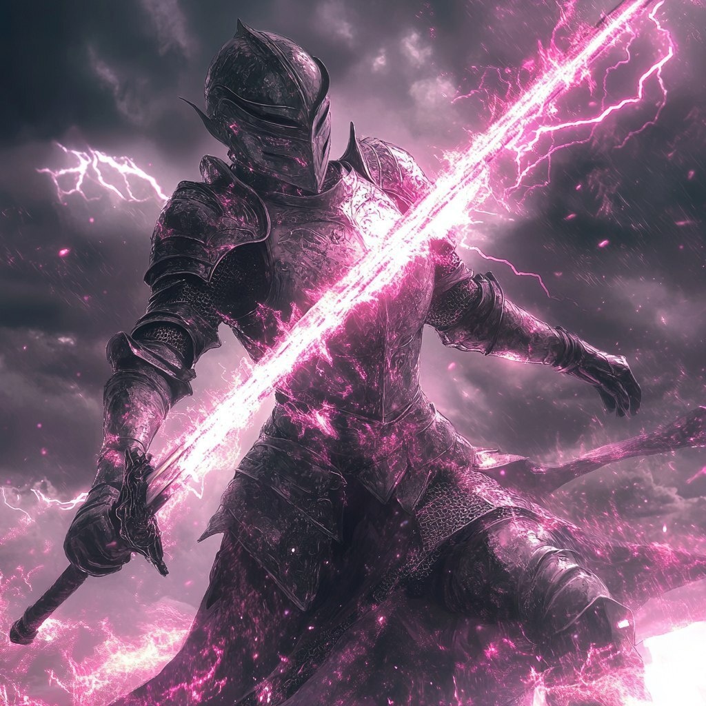 Создано на основе запроса: cinematic painterly high fantasy female knight, full armor, high contrast, dark themes, magical, strong, raising sword to sky filled with lightning, pink magic glitter on shiny edges --- Автоперевод: Кинематографическая живописная женская рыцарь, полная доспеха, высокая контрастность, темные темы, волшебные, сильные, поднимающие меч до неба, наполненное молнией, розовый волшебный блеск на блестящих краях Как тебе иллюстрация? 🤔 https://dzen.ru/id/65c0c65c86e4f837c27b24d7 #ИИ #AI #нейросеть #midjourney #art