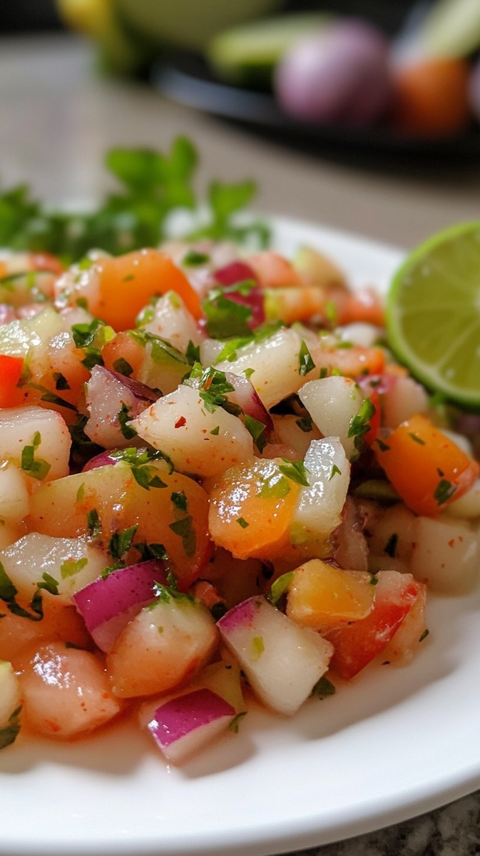 Создано на основе запроса: Title: Zesty Lime Ceviche | Close-up Shot right view, taken by a photographer with a high quality camera, served