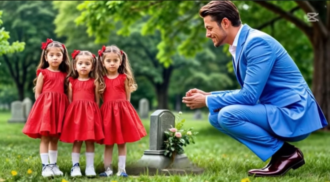 После церемонии мужчина подошёл к могиле, опустился на колени и долго молчал. Девочки стояли рядом, наблюдая за ним. Когда он поднялся, они подошли ближе.