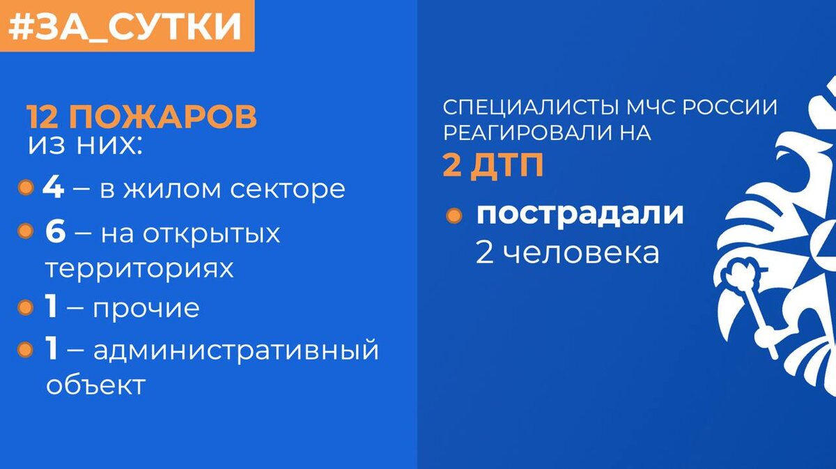 👩🚒МЧС России: за прошедшие сутки ликвидированы 12 пожаров