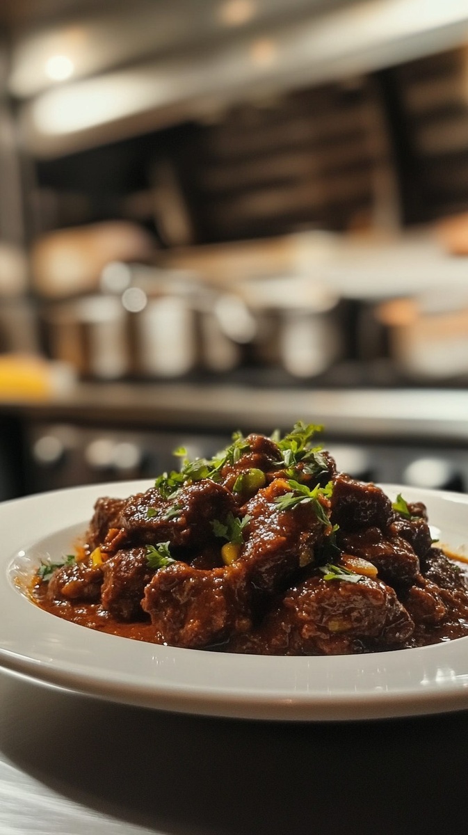 Создано на основе запроса: Title: Lamb Vindaloo | Close-up Shot right view, taken by a photographer with a high quality camera, served on a