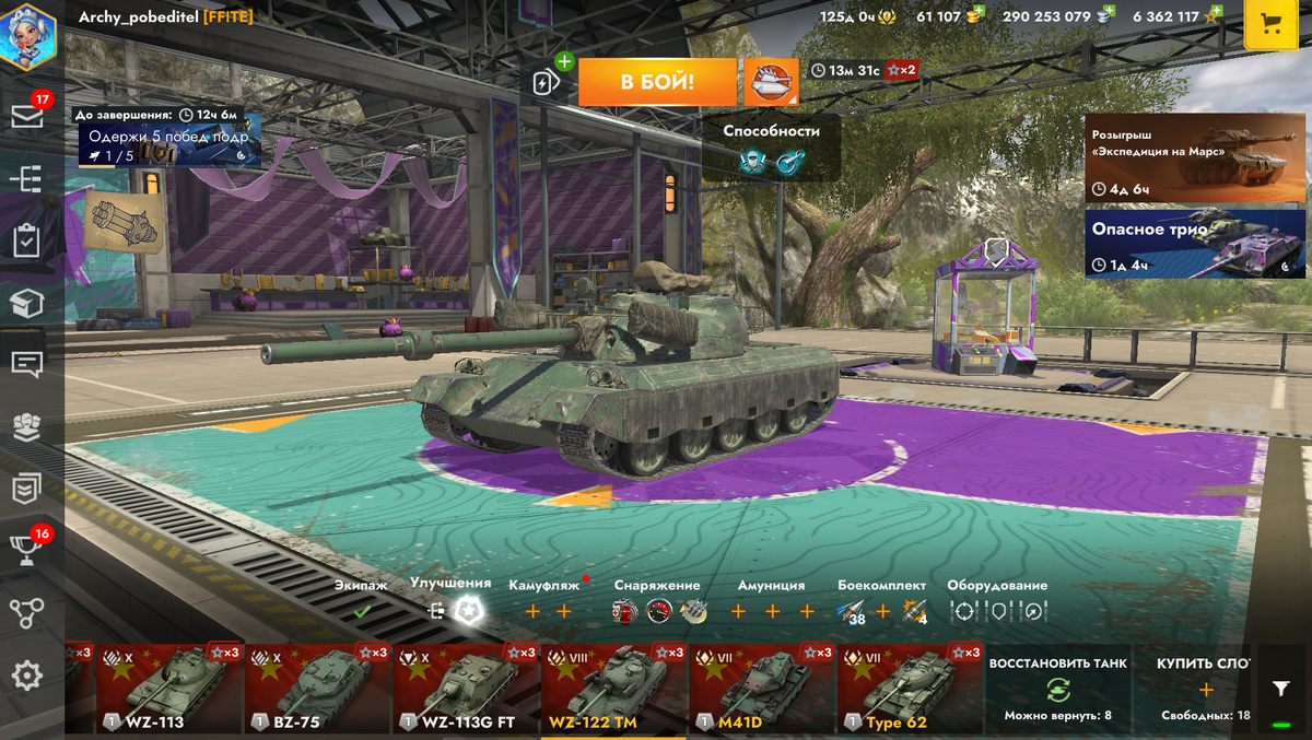А вот когда-то вы играли на тех танках, которые выпадали вам из контейнера, когда у вас в ангаре 200+ танков и у вас есть кучу любимчиков? Вот и я не особо. Но я решил поиграть в режиме "Mad Gays" (Веселые ребята) на 122-TM, на котором я играл в Мире Танков, но немного. Ставим стандартный набор для таких танков. И пока грузится бой, я немного накину про этот танк. Это как Т-34-3, только с броней, УВН и как бы все. Казалось бы, теперь это альфач, который может многое в бою. Но он едет чуть лучше, прям немного, чем Centurion I, о котором я делал свежий обзорчик. Пробитие, тут нормальное, особенно на голде, его хватает, точность тоже нормальная, но динамики нет, а что по броне? Вы её не почувствуете. Она есть в башне и бортах, но вот её не хватит даже против одноклассников. Так, так, а что пишет наш неподкупный друг? Ну тут даже я с превью не понял что тут и как, лезем глубже. Дальше я смотреть не мог. Мнение эксперта. Он говорит, что танк посредственный, что такое себе, а потом так р