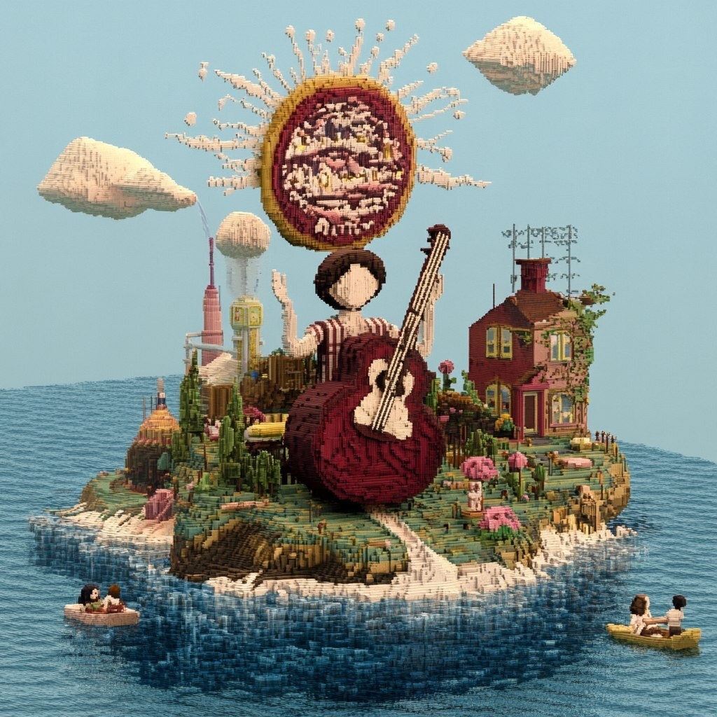 Создано на основе запроса: voxel render of Neutral Milk Hotel album cover