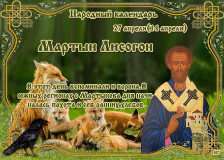 27 апреля 2025 года по приметам о погоде весной и осенью, а также о том, когда следует высаживать саженцы. В народном календаре дата получила название Мартын-лисогон. Православная церковь 27 апреля почитает святителя Мартина Исповедника, папу Римского. Родился святой в VII век в умбрийском городе Тудертума. До 649 года был в Константинополе постоянным дипломатическим представителем папы римского. С 21 июля 649 г. по 17 июня 653 г. был 74 папой римским. В 649 г. осудил монофелитство, чем сильно разгневал императора Константа II, и тот приказал военачальнику Равеннскому экзарху Олимпию доставить святителя на суд. Олимпий, боясь вызвать гнев народа, подослал воина, чтобы он тайно убил Мартина. Когда убийца приблизился к святителю, чтобы покончить с ним, то неожиданно ослеп. ❇️ПРИМЕТЫ ✔️Ранний взлет пчел сулит красную весну. ✔️Много сока из березы течет – к поздней осени. ✔️Если верба зацвела и прилетели ласточки и стрижи, то пришла пора саженцы в садах высаживать. ✔️Дождливый день – к