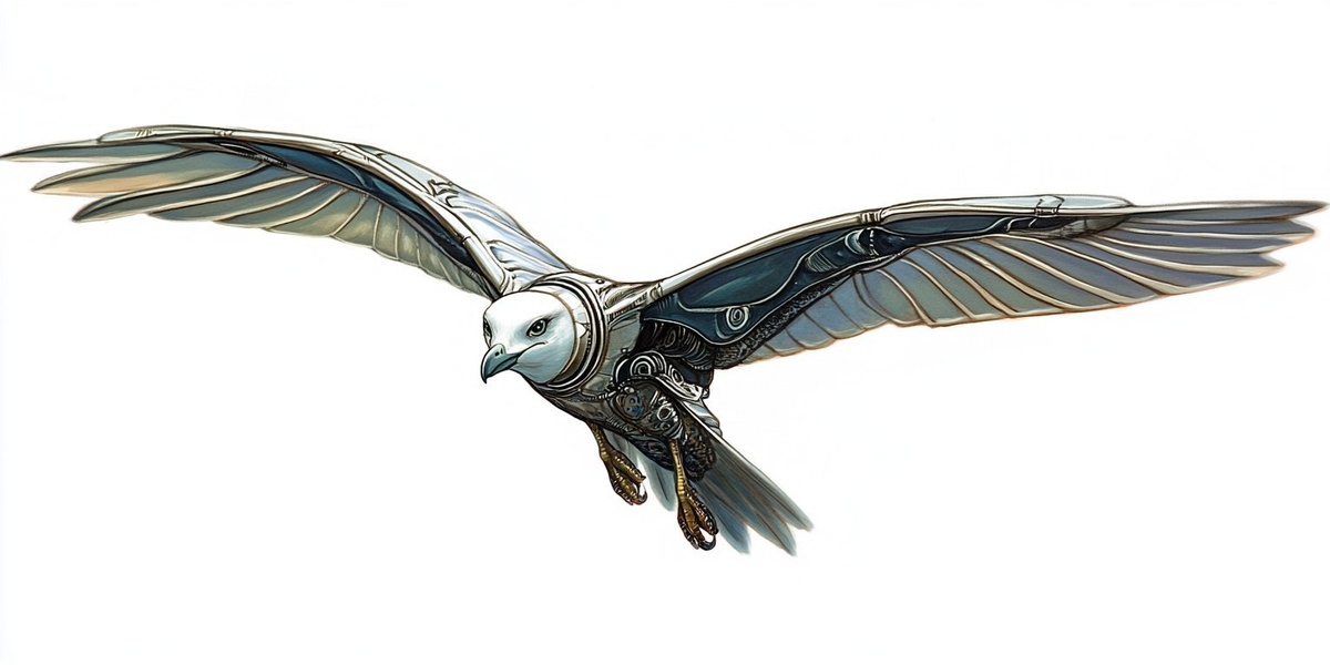 Создано на основе запроса: technical, detailed illustration of a seagull flying