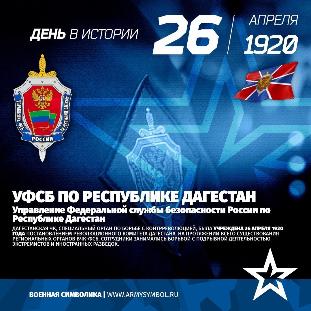 Дагестанская ЧК, специальный орган по борьбе с контрреволюцией, была учреждена 26 апреля 1920 года постановлением Революционного комитета Дагестана. На протяжении всего существования региональных органов ВЧК-ФСБ, сотрудники занимались борьбой с подрывной деятельностью экстремистов и иностранных разведок.