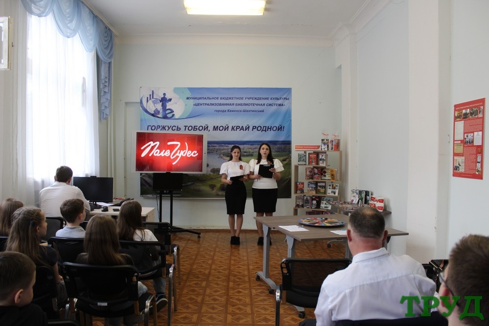 Библиотека имени Горького стала площадкой традиционной Всероссийской акции «Библионочь», которая открыла серию культурных «ночей» в Каменске-Шахтинском. В этом году акция была посвящена Году защитника Отечества и 80-летию Великой Победы. Столь глубокая тема дала библиотекарям широкий простор для творчества. Для гостей вечера работали выставки, фотозоны, разнообразные викторины – каждый мог найти то, что ему интересно. Самые юные гости оценили мастер-классы по изготовлению из бумаги красных гвоздик, голубей мира и другой атрибутики Дня Победы. Каменчане постарше воспользовались возможностью выразить слова поддержки нашим защитникам на площадке «Письмо солдату». Студенты Каменского химико-механического техникума приняли участие в игре «Поле чудес», где освежили свои знания о Великой Отечественной войне и, конечно, получили призы. Зрители с интересом отгадывали слова, а во время музыкальных пауз – пели любимые всеми фронтовые песни вместе с ансамблем «Вольный Дон» (ДК им. Маяковского). А