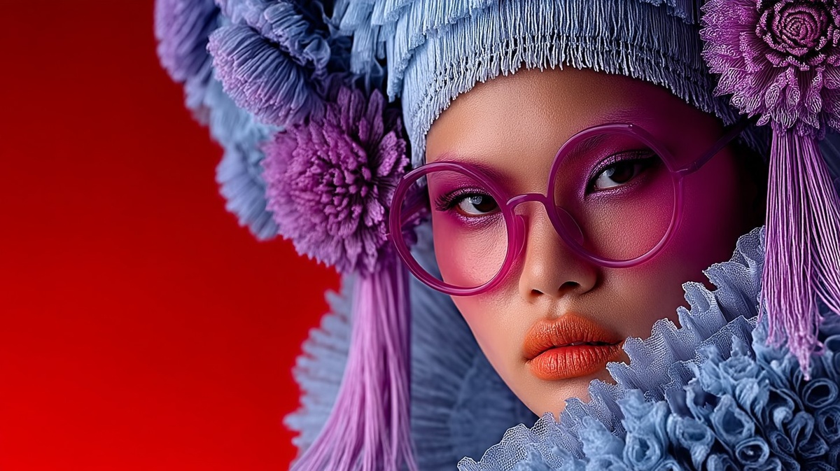 Создано на основе запроса: abstract dark surrealism, Wes Anderson palette, space goth female model, futuristic, haute couture, DMT