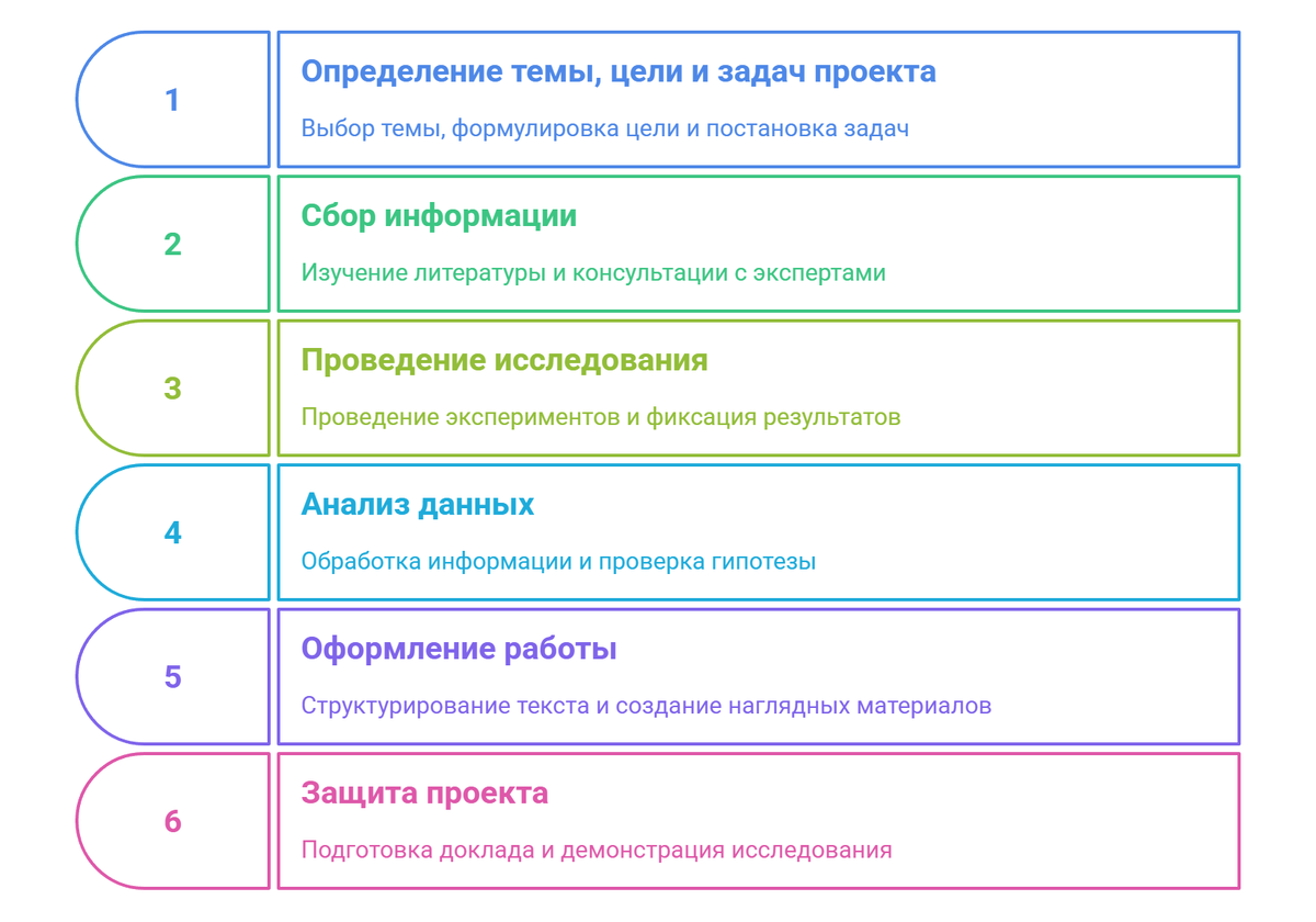- Разделение на этапы (определение ключевых шагов: подготовка, исследование, анализ, оформление).