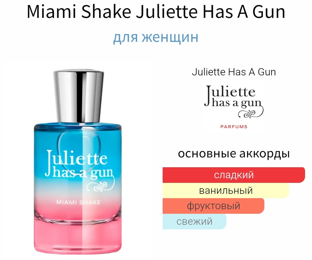 Протестировав недавнюю новинку от Juliette Has a Gun Miami Shake, захотелось немедленно его себе в коллекцию!!! Прекрасный аромат клубники со сливочно-ванильным мороженым!!! Раскрывается на коже кремово-уходовым средством и шлейфит ванильным кремом с лёгкой ноткой свежести!!! Не уловила ни каких химозных ноток!!! Странно слышать такое описание молекулярных ароматов, концепция бренда создавать их таковыми!!! Отличный выбор для девушек для ношение на повседневной основе!!! Мягкий, нежный, игривый и не навязчивый парфюм со стойкостью на весь день!!! Горячо рекомендую к затесту!!! Учитывая специфичность парфюмов бренда, не рекомендую брать аромат вслепую, а хорошенько разнашивать на коже и начинать знакомство с пробников и отливантов!!! Такую возможность предоставляют некоторые парыюмерные магазины!!!