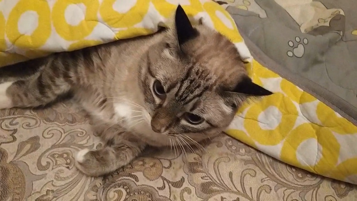 Кот Беляшик хочет спокойствия и уединения. Не смотря на тёплую погоду, он пытается спрятаться под покрывалом. Всем всё объясняет и меня настойчиво выгоняет. Ибо, наглость - второе счастье. Ссылка на видео в ОК: https://ok.ru/cherbeloid