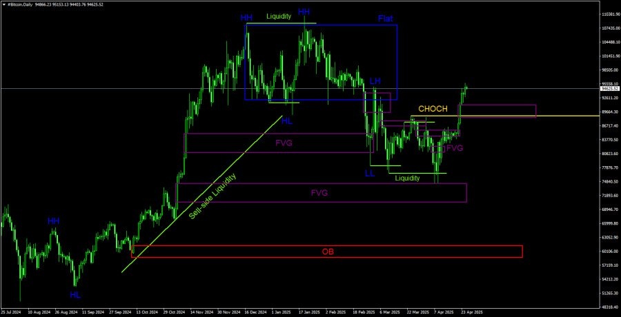 https://basechop.ru/wordpress/?p=40133 Биткоин на этой неделе активно растет, но мы не пытаемся увязать фундаментальные события с движениями первой криптовалюты в мире. Следует помнить, что в первую очередь на «фундамент» реагирует валютный рынок. На валютном рынке доллар падал в понедельник, рос во вторник, а все остальное время находился во флэте. Таким образом, сказать, что какие-либо новости спровоцировали рост биткоина, мы не можем. Биткоин продолжает торговаться, как спекулятивный инструмент, и этим все сказано. Абсолютное большинство прогнозов сводится к моменту, что если спрос будет расти, то и биткоин продолжит рост. В данное время мы с большой опаской относимся к гипотезе о новом восходящем тренде, хотя следует признать – линия CHOCH на дневном ТФ преодолена, а это признак смены тренда. Мы все еще считаем, что текущий рост может быть ловушкой для быков. Однако сигналов к возможному возобновлению падения в данное время нет. И даже просто паттернов, которые предупреждали бы о…