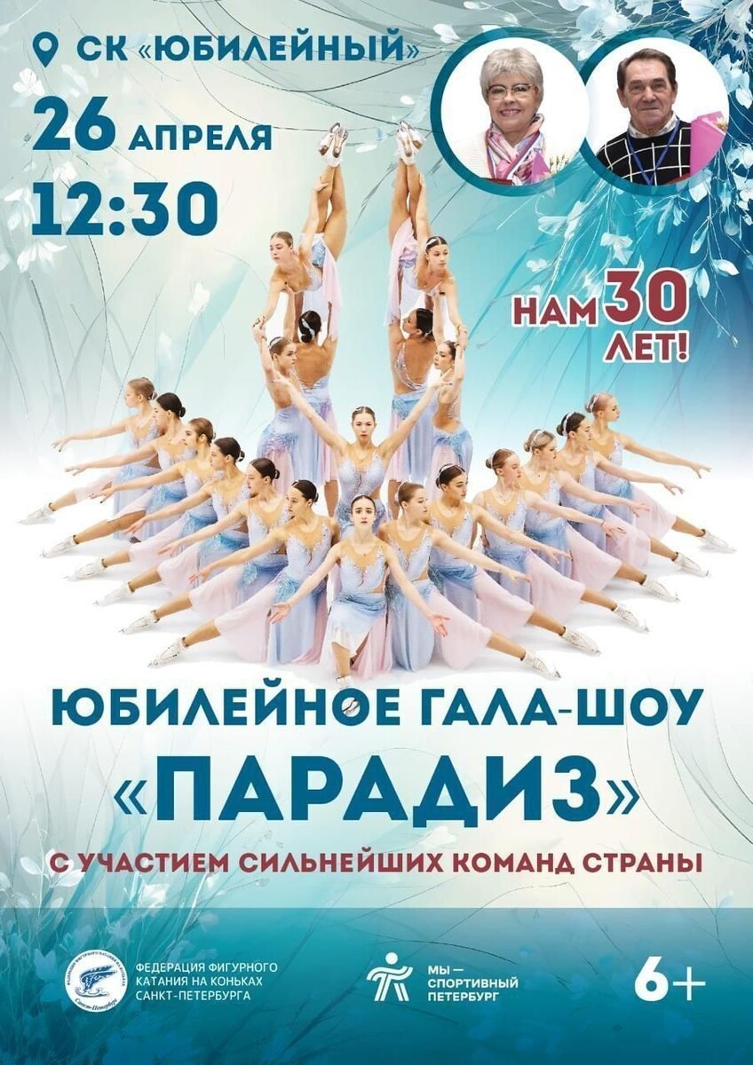 На главной арене СК «Юбилейный» 26 апреля в 12:30 пройдет красочное шоу, которое посвятили 30-летию самой титулованной в России команды по синхронному катанию на коньках «Парадиз».