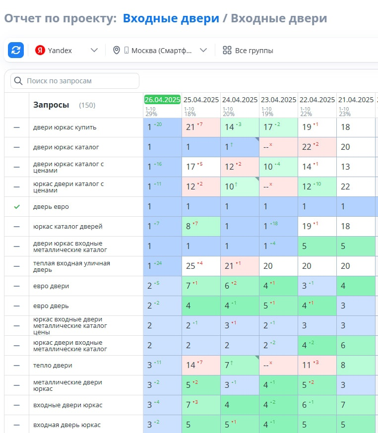 Сайт постоянно болтало, сильно прыгала релевантность с одной страницы на другую. Работа была комплексная..