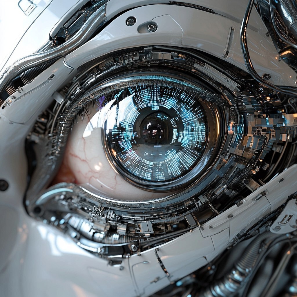 Создано на основе запроса: An ultra-detailed, cold, close-up mechanical eye that searches your digital data