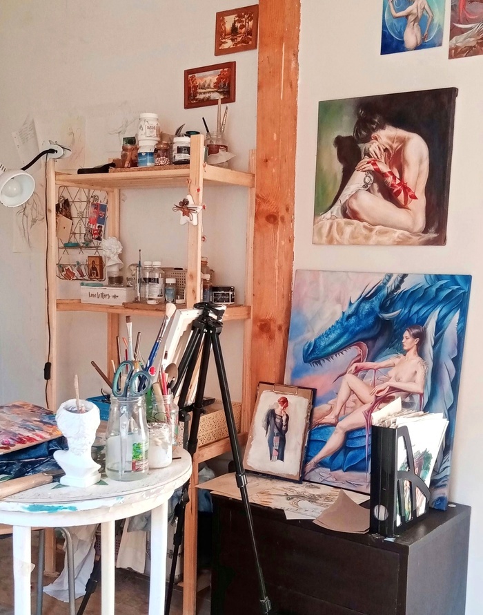 Она появилась у меня в 16 лет. Родители отдали мне веранду под мастерскую в нашем доме и полную свободу действий. Папа только стены побелил. Там я писала свои первые серьезные картины. Сейчас я уже давно с родителями не живу, отдельной мастерской нету, ее перенесла в квартиру. И дома этого больше нету, сгорел. Грустно, зато в памяти навсегда это место останется как желание поскорее закончить с делами, чтобы на рассвете или на закате распахнуть летом окна, сесть под солнце, и рисовать, рисовать, рисовать... Пост автора neitzart. Подписаться на Пикабу Познавательный. и Пикабу: Истории из жизни.