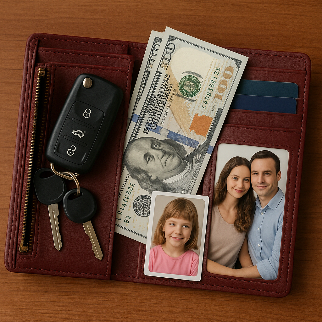 На следующее утро Олеся торопилась на работу. В спешке она забыла дома свой кошелёк. В кошельке лежали ключи от машины, ключи от салона красоты, в котором она работала, деньги и банковские карты.