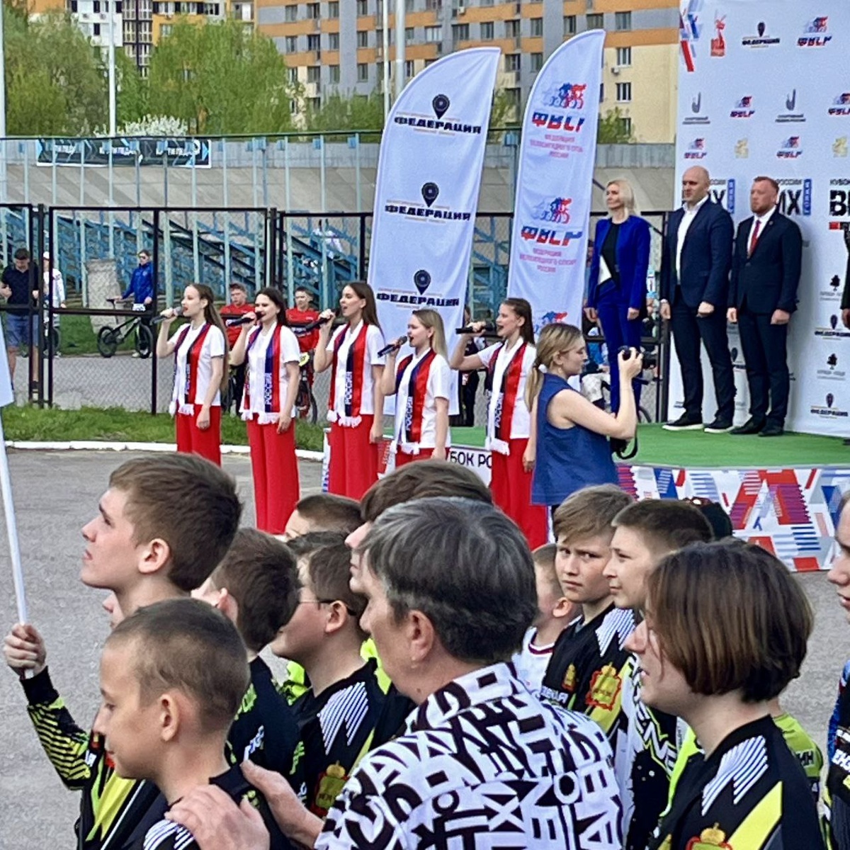 Анна Рыжова ,Марина Паршина, Виктория Аброськина, Виктория Филиппова и Ангелина Тезикова (преп. Салмова И.В.) #ДМШимВПЧеха 25 апреля выступили на базе велотрека «Сатурн» на Торжественной церемонии открытия Кубка России и Всероссийских соревнований по велосипедному спорту в дисциплине ВМХ. Яркие солисты студии «Шанс» вдохновили всех исполнением Гимна России и патриотических композиций. #культура58 #penza_kult.