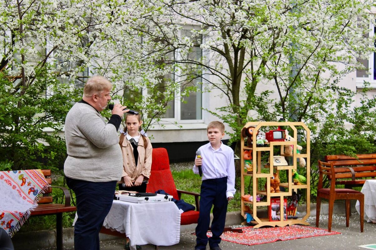 Праздничное представление ко Дню Победы! Вчера ученики начальной школы вышли на праздничный концерт, приуроченный к 80-летию Победы в Великой Отечественной войне. Перед зрителями развернулся театральный спектакль, перенесший гостей в гостиную обычной советской семьи. Главные герои — дедушка, его внук и внучка — беседовали о военном прошлом, о храбрости защитников Отечества, о вечных ценностях человеческой жизни. 👧 Ребята исполняли народные и военные композиции, танцы и пели песни. Ощутить атмосферу послевоенного времени зрителям помогали импровизированные записи на старых пластинках, которые дедушка ставил послушать для своих внучат. 🌿 К сожалению, пошёл дождь, и не все ребята успели выступить, поэтому продолжение мероприятия мы переносим ориентировочно на 5 мая. Надеемся, что погодные условия позволят нам насладиться прекрасным выступлением юных артистов и снова ощутить связь поколений! #ДОНМ #ШколыКолледжиМосквы
