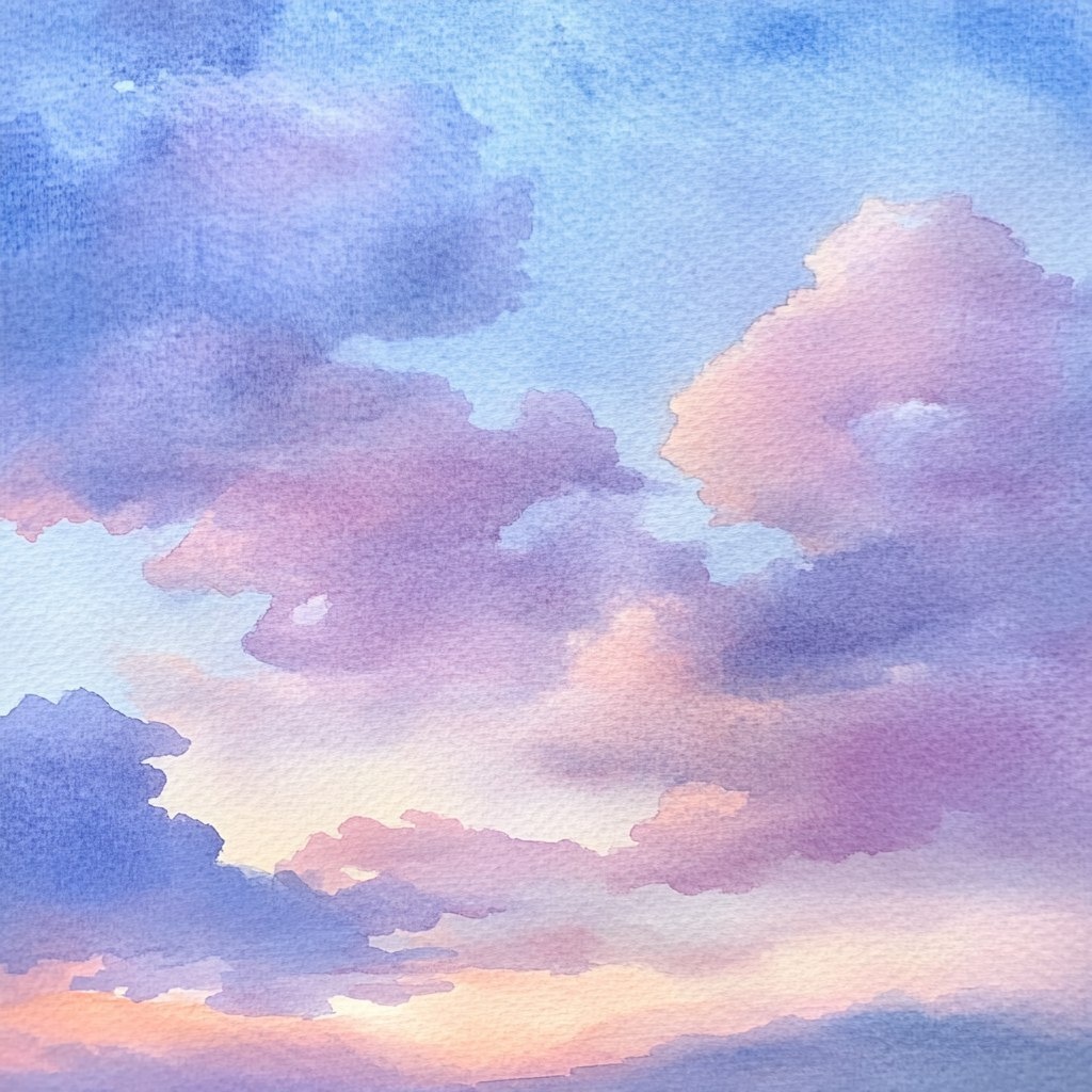 Создано на основе запроса: a watercolor cloudy evening sky in the style of dreamworks