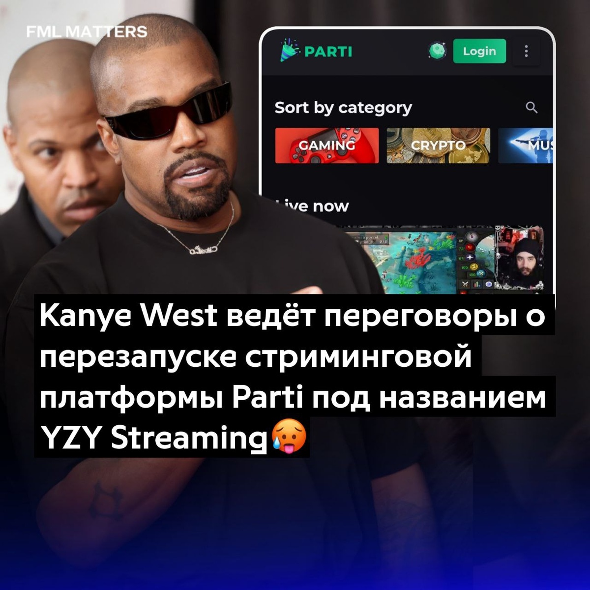 В ответ на пост ⁉️ KANYE WEST ХОЧЕТ СОЗДАТЬ УБИЙЦУ TWITCH? Йе ведёт переговоры о перезапуске стриминговой платформы Parti под названием YZY Streaming. В рамках сделки ему предлагают 25 млн долларов авансом и 50% доли. Изначально Йе задумывал аналог Spotify, Сейчас он рассматривает возможность развития платформы по модели Twitch — с акцентом на прямые эфиры. 💀 FML MATTERS