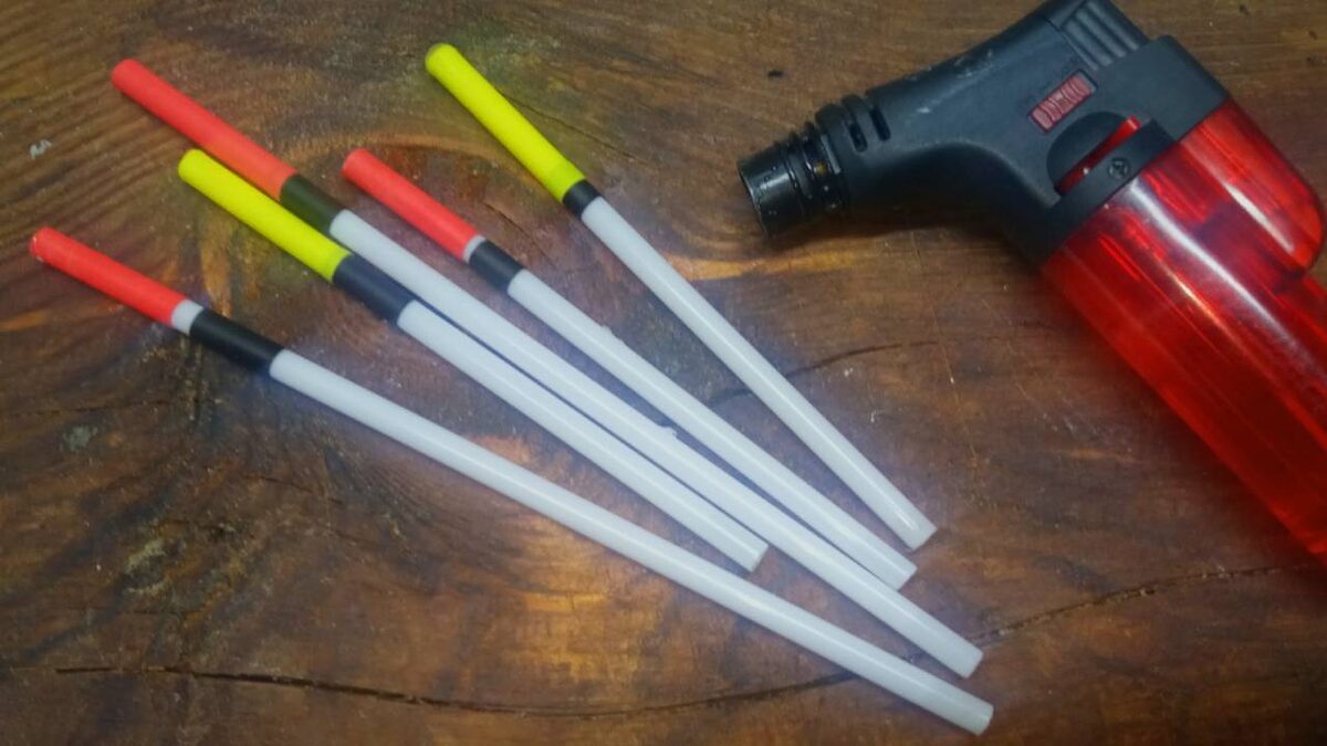 Для антенны подбираем красную, желтую или другую термоусадочную трубочку, которую вам хорошо будет видно на воде. Аккуратно зажигалкой обжимаем их, чтобы не повредить сам поплавок.