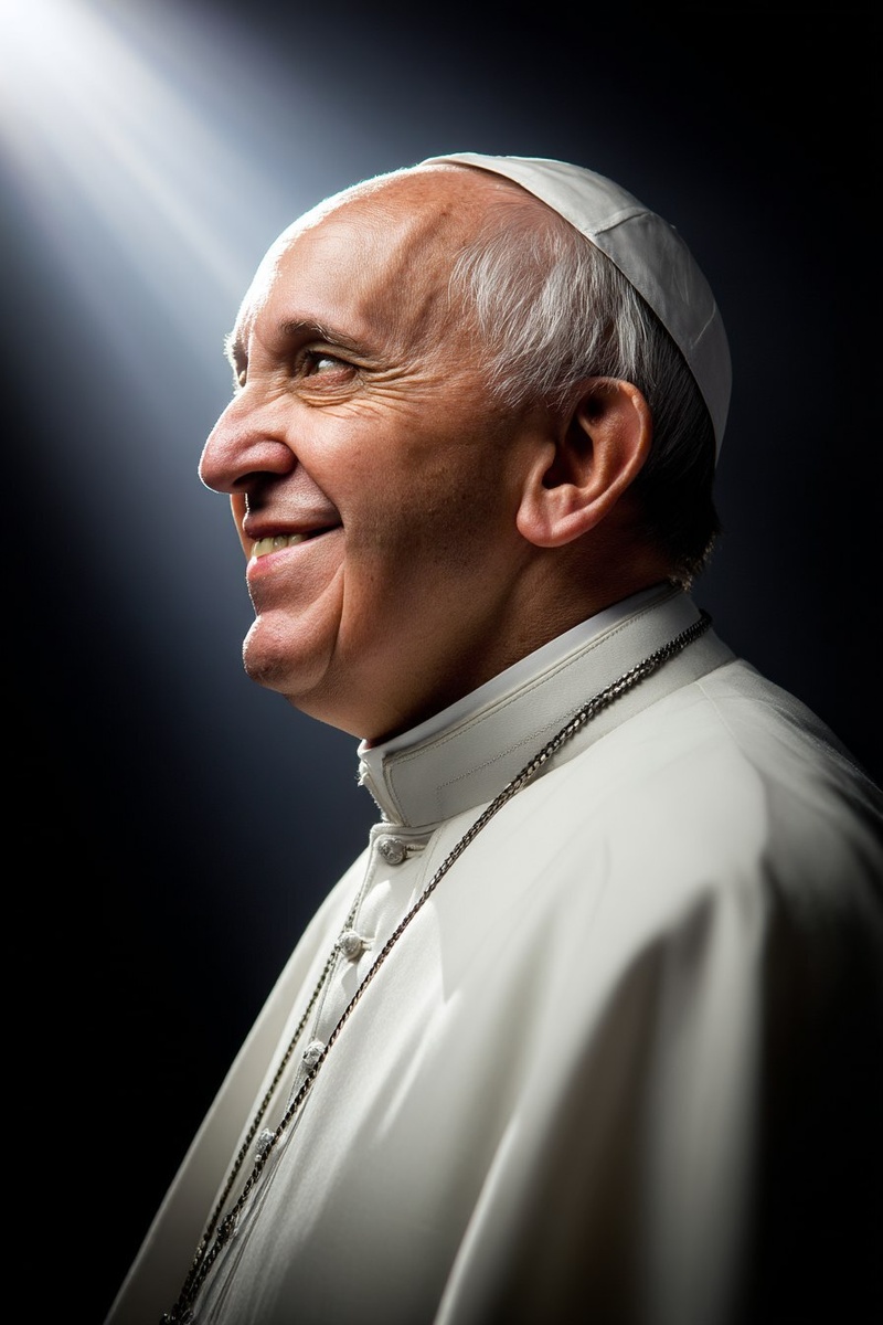 Создано на основе запроса: a photo of Pope Francis, smiling, happy, great illumination, total perfection of photo for a magazine cover