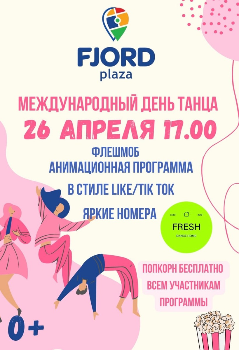 «Международный день танца» 💃 👯♀️ Флэшмоб, анимационная программа в стиле Like|TIK TOK, яркие номера. 📆 26 апреля, начало в 17:00. 📍 ТДЦ Fjord Plaza 🎟 Вход свободный. Оставайтесь с нами #НашаПсковскаяобласть