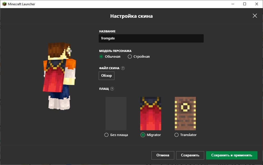 3️⃣ 🟢 Если это OptiFine-плащ - установите мод OptiFine, зайдите в настройки скина и выберите раздел с плащами.