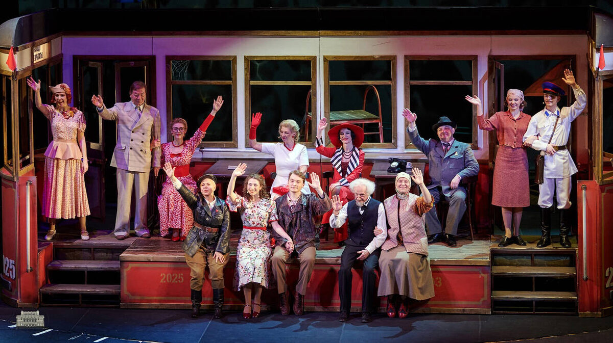 Кроме того, здесь утрированно показан коммунальный быт, пародия на кинофильмы довоенных лет с долей сентиментальной ностальгии. Добрый юмор перемежается с умными меланхоличными стихами, завершающими смешные сцены. В разговорах не раз возникает тема переполненного трамвая – именно он стал символом новой жизни и центральной декорацией, выезжающей на поворотном круге, в которой происходит большая часть действа.