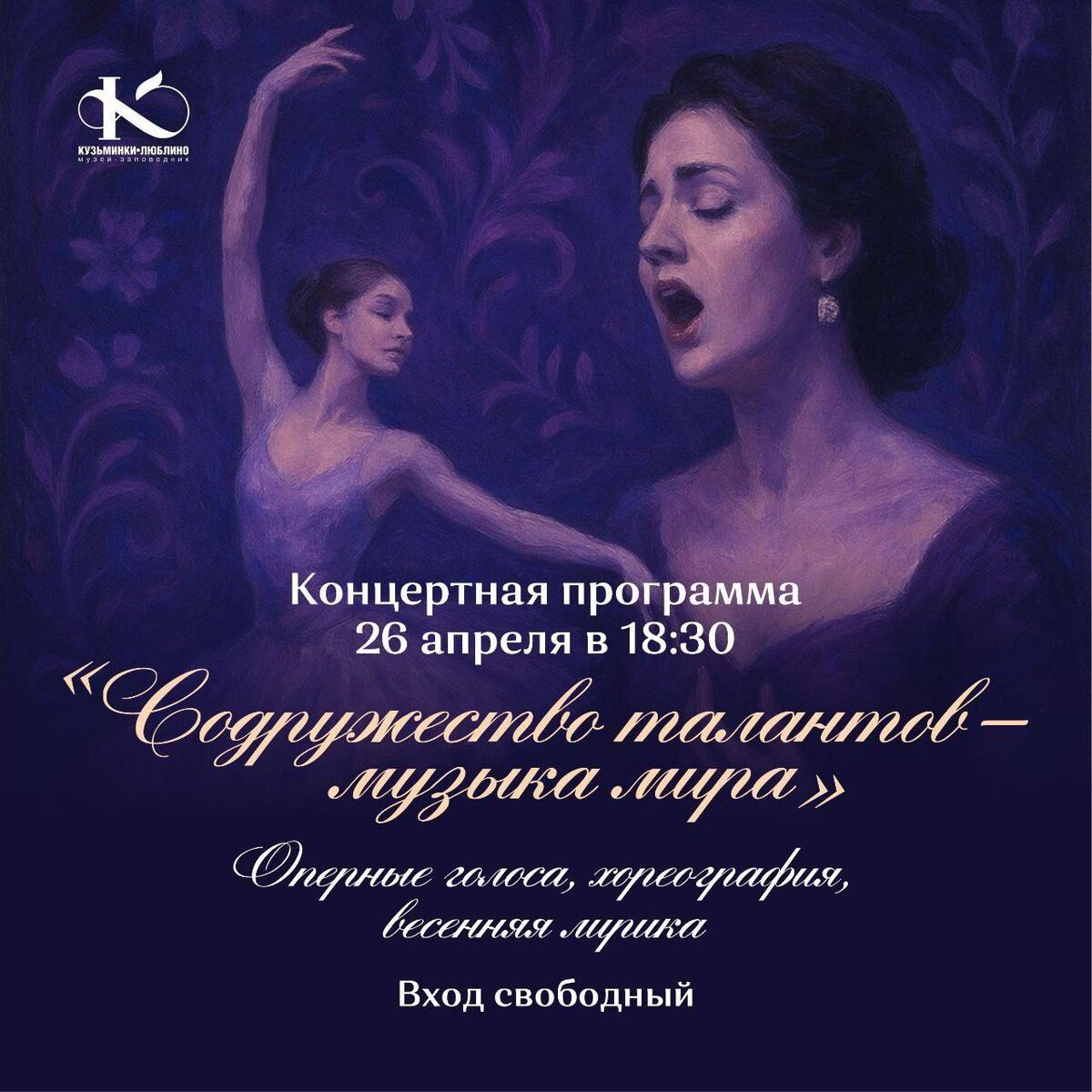 πΠΠΎΠ½ΡΠ΅ΡΡ Β«Π‘ΠΎΠ΄ΡΡΠΆΠ΅ΡΡΠ²ΠΎ ΡΠ°Π»Π°Π½ΡΠΎΠ² - ΠΌΡΠ·ΡΠΊΠ° ΠΌΠΈΡΠ°Β» Π² Π°ΠΊΡΠΎΠ²ΠΎΠΌ Π·Π°Π»Π΅ ΠΏΠ°ΡΠΊΠ° Β«ΠΡΠ·ΡΠΌΠΈΠ½ΠΊΠΈΒ» π₯ ποΈ26 Π°ΠΏΡΠ΅Π»Ρ Π² 18:30 πΠΠΊΡΠΎΠ²ΡΠΉ Π·Π°Π» ΠΏΠ°ΡΠΊΠ° Β«ΠΡΠ·ΡΠΌΠΈΠ½ΠΊΠΈΒ»: ΠΡΠ·ΡΠΌΠΈΠ½ΡΠΊΠΈΠΉ ΠΏΠ°ΡΠΊ, Π΄ΠΎΠΌ 1, ΡΡΡ. 7 ΠΠ΅Π³Π΅Π½Π΄Π°ΡΠ½Π°Ρ ΠΊΠ»Π°ΡΡΠΈΠΊΠ° Π² ΠΈΡΠΏΠΎΠ»Π½Π΅Π½ΠΈΠΈ ΡΠΎΠ»ΠΈΡΡΠΎΠ² ΡΠ΅Π°ΡΡΠΎΠ², Π»Π°ΡΡΠ΅Π°ΡΠΎΠ² ΠΌΠ΅ΠΆΠ΄ΡΠ½Π°ΡΠΎΠ΄Π½ΡΡ