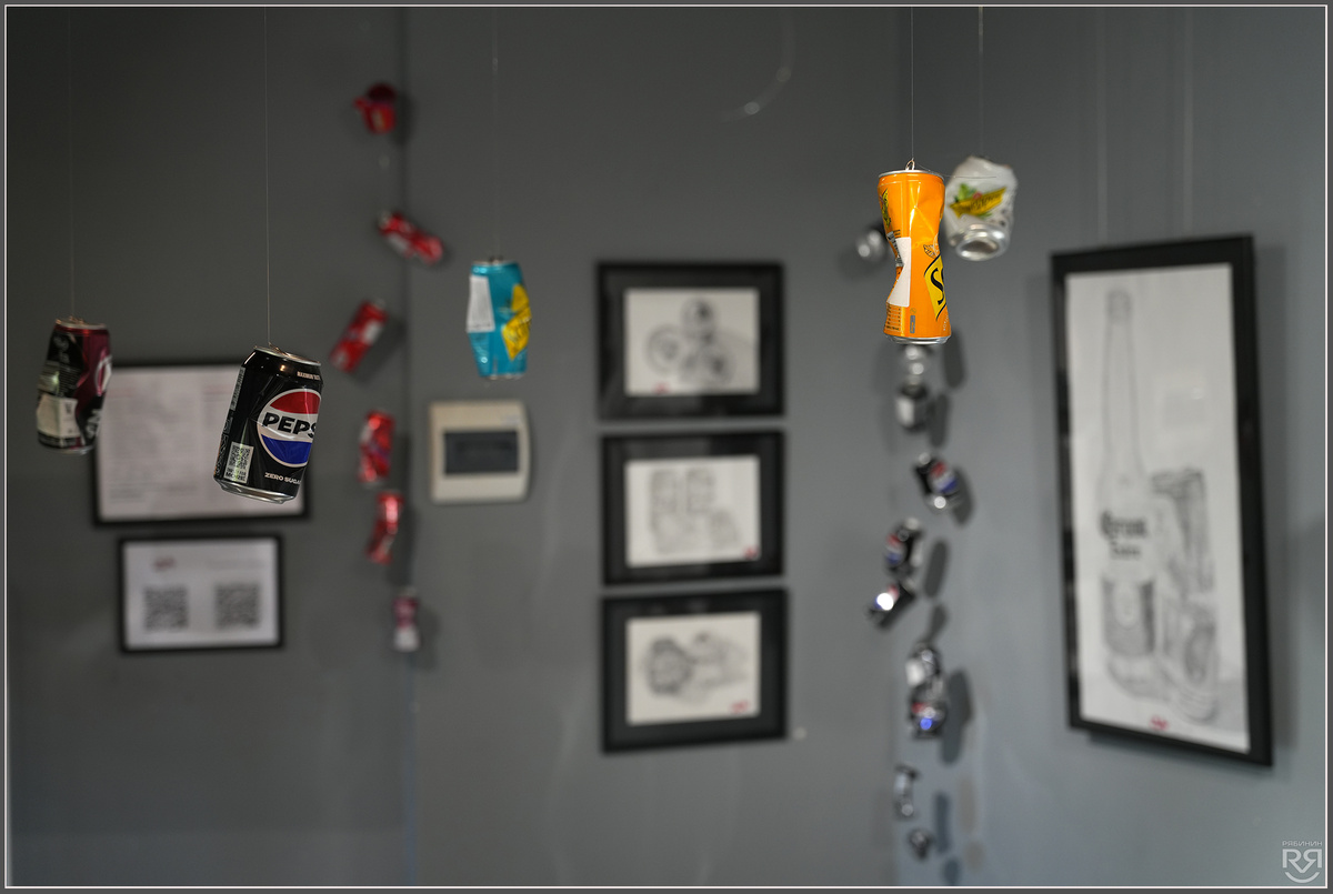 Сначала меня порадовали развешанные по залу смятые жестяные банки, чем-то напомнившие арт-мероприятия из моей юности и инсталляции в стиле современного искусства из того, что было под рукой. Сейчас это уже выглядит как "старая школа", но висящие жестянки всего лишь пролог...