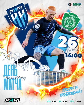 Футбольный клуб "Пари НН" 26 апреля играет с "Ахматом". Матч 26 тура МИР РПЛ пройдет на стадионе "Нижний Новгород".