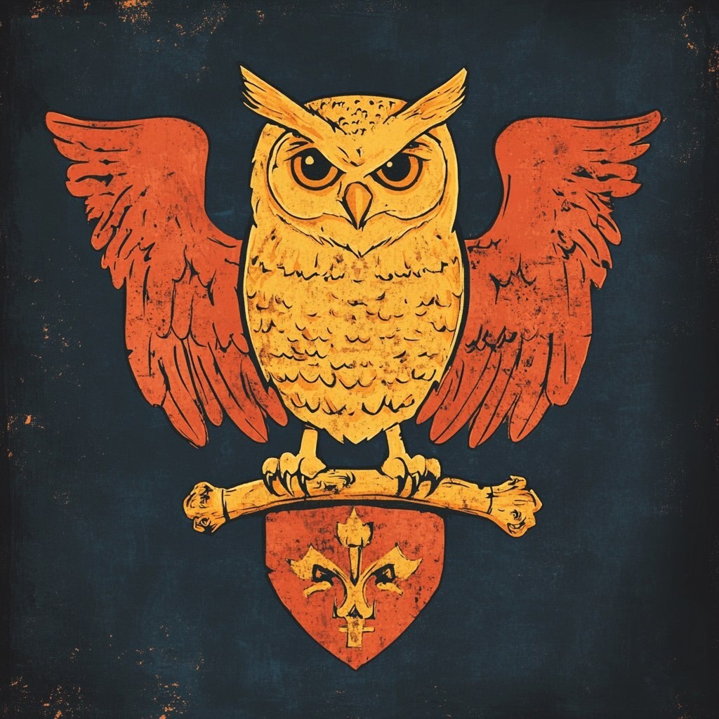 Создано на основе запроса: fantasy medieval heraldry flag design, simple, owl themed