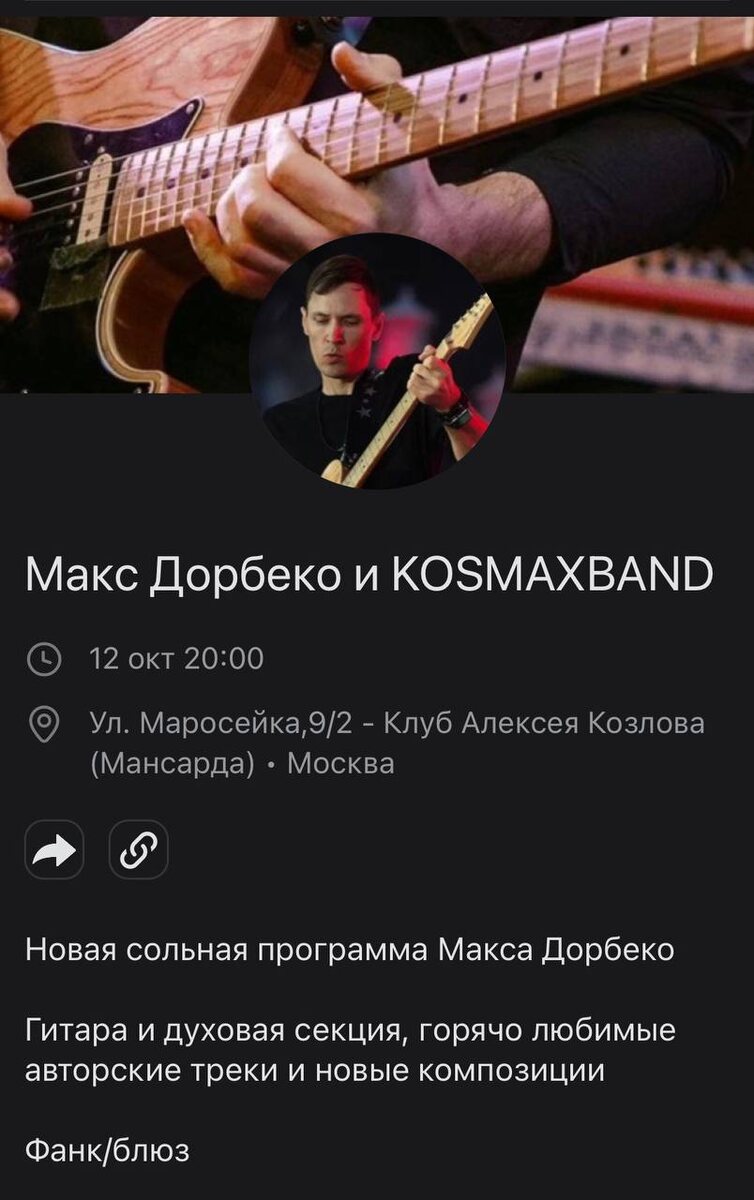 Большое спасибо всем, кто пришел меня поддержать! Мне очень приятно и послевкусие от концерта до сих пор не покидает меня. Ваши отзывы и впечатления я до сих пор получаю и читаю - это очень и очень приятно. Я очень рад, что все получилось так, как я и задумывал! В этом году у меня запланировано еще несколько концертов и я хотел бы обратить ваше внимание на 12 октября, билеты на концерт появятся скорее всего за месяц до концерта. На этот раз на сцене со мной помимо ритм-группы: барабанов/баса и клавишных, будет духовая секция, этим выступлением мы начнем подготовку к следующему альбому, более фанковому