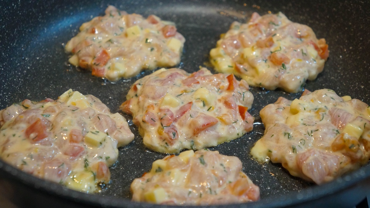 Нет мясорубки? Не беда! Сегодня я покажу, как сделать сочные куриные котлеты буквально из ничего. Ну ладно, не из ничего — из филе, сыра и пары хитростей. Ингредиенты: Приготовление: Берём 2 куриных филе и нарежем на кубики. Филе из морозилки — наш секрет. Замороженное мясо режется как масло. Нарежем мясо на тонкие пластинки, а потом – на мелкие кубики. Повторяем со вторым филе. Да, придётся поработать ножом, зато мясорубка не понадобится. Сыр нарезаем мелким кубиком. Так он равномерно распределится в котлетах и будет красиво плавиться. Для этого сначала режем его тонкими пластинками, затем соломкой и, наконец, мелкими кусочками. Отправляем в миску к курице. Пусть знакомятся. Следующий на очереди ингредиент – помидор. У меня 2 средних помидора. Их тоже нарежем на мелкие кубики. Отправляем к остальным продуктам. Теперь добавляем сюда рубленный укроп для свежести и аромата. Добавляем одно яйцо, 2 столовые ложки сметаны, 3 столовые ложки муки. Солим по вкусу. Всё хорошо перемешиваем. Став
