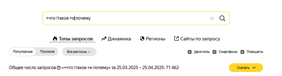Распарсила в вордстат запросы "что такое и почему".