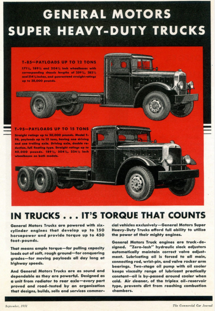 Как видно грузовики GMC обладают самыми мощными двигателями и самой высокой грузоподъёмностью в сравнении с аналогами и близкие к послевоенным ЯАЗ-210.