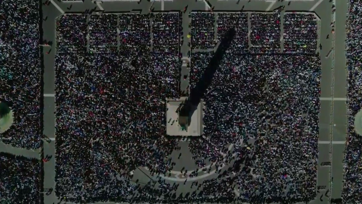 В Ватикане проходит прощание с папой римским Франциском. Так с воздуха выглядит площадь Святого Петра, где верующие собрались попрощаться с понтификом.