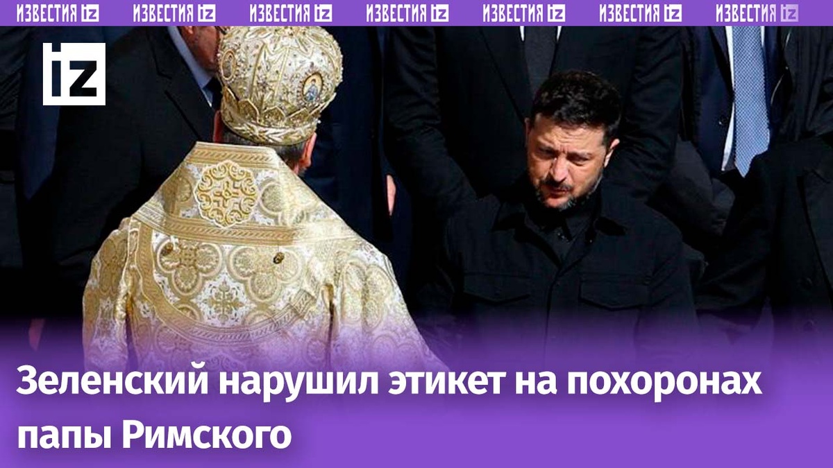 Владимир Зеленский прибыл на похороны папы Римского Франциска не в деловом костюме, а в камуфляжной одежде черного цвета в нарушение принятых норм этикета, передает корреспондент РИА «Новости». Папа Римский Франциск — в миру Хорхе Марио Бергольо — скончался в понедельник в возрасте 88 лет в своей резиденции в Ватикане в результате инсульта. Он возглавлял католическую церковь с марта 2013 года. Торжественная церемония похорон проходит в субботу. Понтифика похоронят, согласно его завещанию, в римской базилике Санта-Мария-Маджоре, а не в Ватикане, где покоятся многие его предшественники. Все прибывшие на похороны понтифика господа одеты в темные костюмы или фраки, все дамы в черном, на некоторых из них головные уборы. Однако Владимир Зеленский отдал предпочтение армейскому камуфляжу черного цвета, в связи с чем резко выделяется из толпы. Зеленский ранее неоднократно пренебрегал этикетом в общении с западными лидерами. В частности, на встречу с президентом Америки Дональдом Трампом он прие