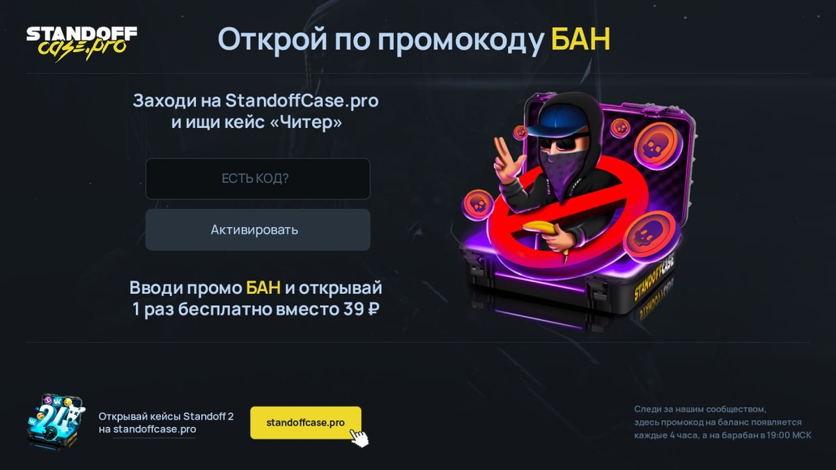 🎯 Промокод БАН = бесплатный кейс «Читер» на https://standoffcase.pro/case/136