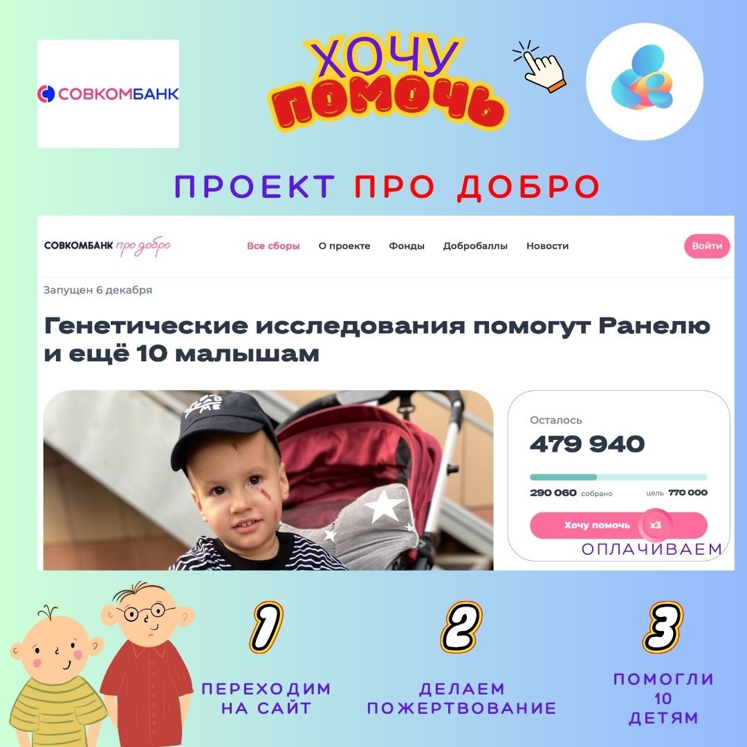 Что еще? А, ну ссылка конечно - вот она: https://prodobro.ru/projects/geneticheskie-issledovaniya-pomogut-ranelyu-i-etshyo-10-mal