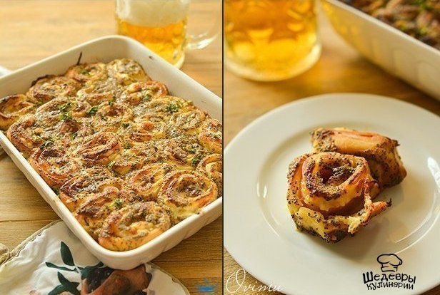 2. Разложить тесто, тут вы можете его смазать или как я , не смазывал его, поместить на него ветчину, затем сверху сыр и скатать его роллом. Кто делал сушевые роллы , то для него этот этап будет абсолютно знаком.