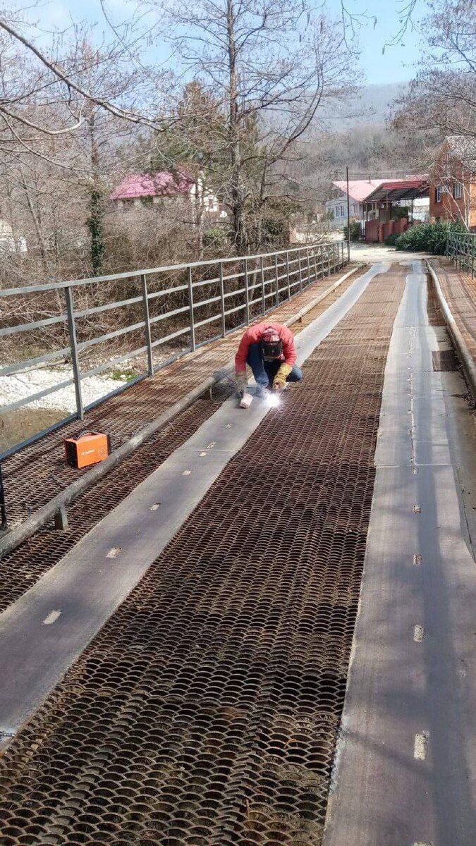 В Дедеркое ремонтируют мост. Повышают его надёжность. «Мост металлический, с металлическим настилом, старый. Мы делаем профилактический ремонт примерно раз в год: где нужно — подвариваем, усиливаем конструкцию. В процессе эксплуатации возникают мелкие дефекты, которые мы устраняем», — рассказал начальник Шепсинского территориального отдела Туапсинского муниципального округа Эдуард Першин.