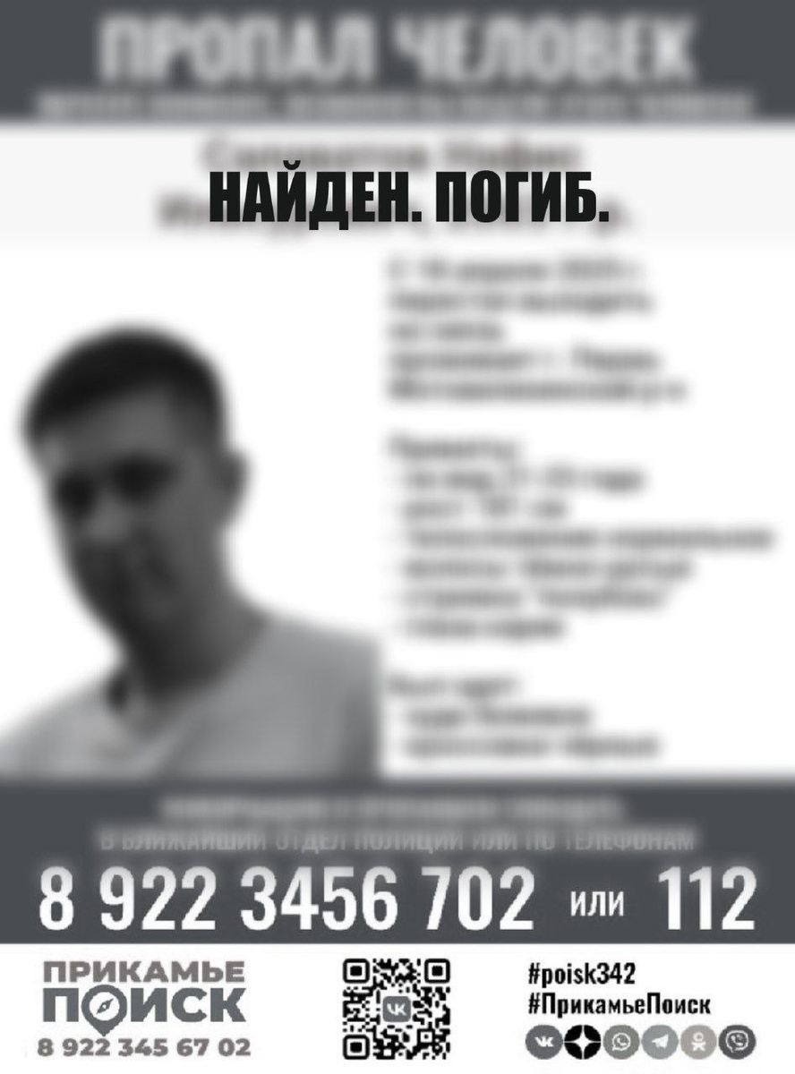 ❗ВНИМАНИЕ ОБНОВЛЕНИЕ ОРИЕНТИРОВКИ❗ ❗ПРОПАЛ❗ САЛАВАТОВ НАФИС ИЛЬСУРОВИЧ, 2003 г.р. с 18 апреля 2025 г. перестал выходить на связь проживает г. Пермь, Мотовилихинский р-н Местонахождение до сих пор неизвестно. Если вам что-либо известно о пропавшем человеке, просьба сообщить по телефонам: 8 922 34567 02 или 112 #ПрикамьеПоиск #poisk342
