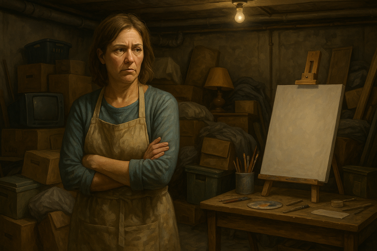 Ирина мечтала о собственной студии много лет. Где будет пахнуть красками, где будет тишина и свет, даже если только искусственный. Мечта казалась глупой среди забот о детях, работе и нескончаемой стирке. Но однажды муж, Дима, сказал: - В подвале пустая комната. Можешь обустроить себе там мастерскую. Всё равно хлам выкидывать пора. Ирина не поверила сначала. А потом - взялась. Мыла стены, красила полы, ставила старый стол, аккуратно расставила кисти, тюбики с акварелью, свои блокноты. Ей казалось, что это будет её место силы. Первую картину она начала писать в субботу. На холсте рождались нежные оттенки весеннего утра - розовые облака, золотистая трава. Она не помнила себя такой счастливой с университетских времён. Через месяц подвал изменился. - Мам, я старый скейт сюда поставил, - сказал сын Тимка. - Ты всё равно в углу сидишь. - Дорогая, - добавил Дима, занося коробку, - тут зимние куртки. Положу здесь на время? А потом появилась старая микроволновка. Кресло без ножки. Два мешка с кн