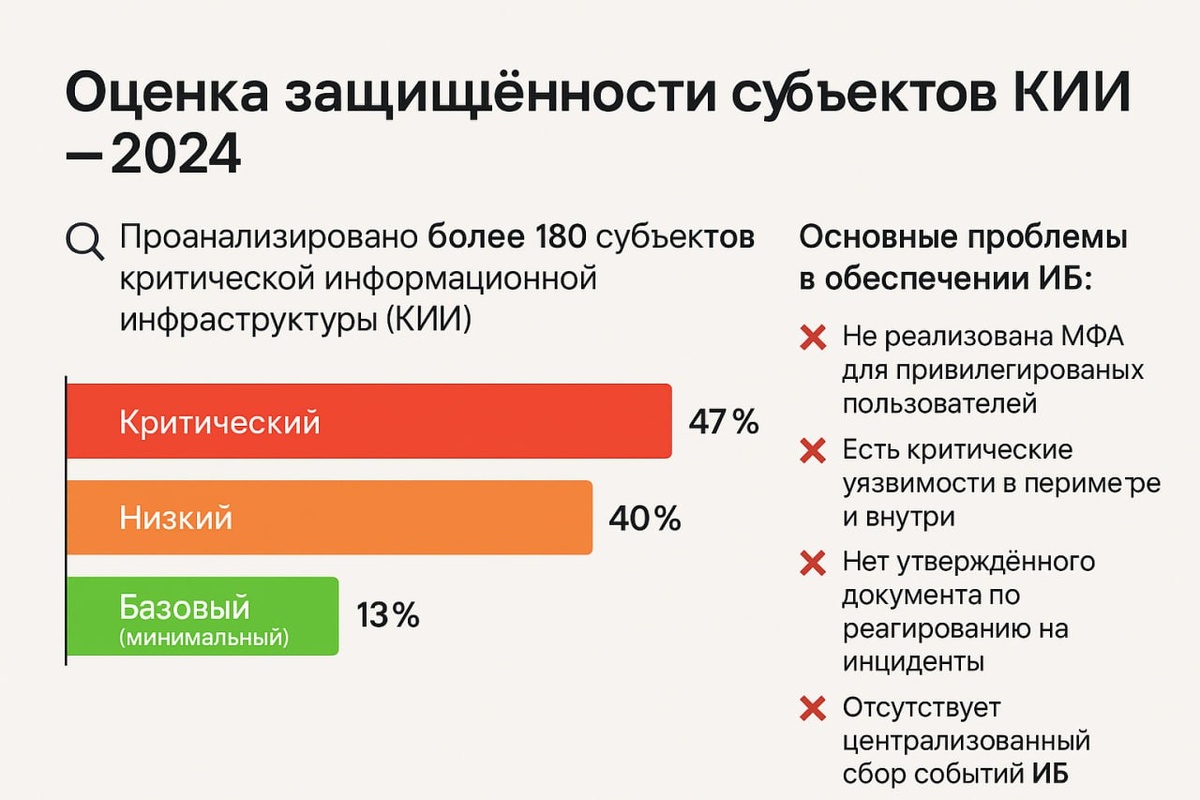 🛡 Оценка защищённости субъектов КИИ в 2024: почти 90% — на критическом или низком уровне