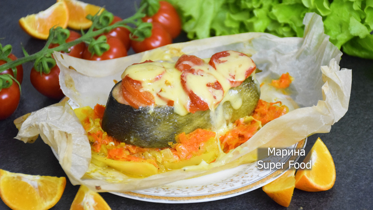 Вкуснятина из рыбы в духовке: Стейки кеты с овощами и сыром