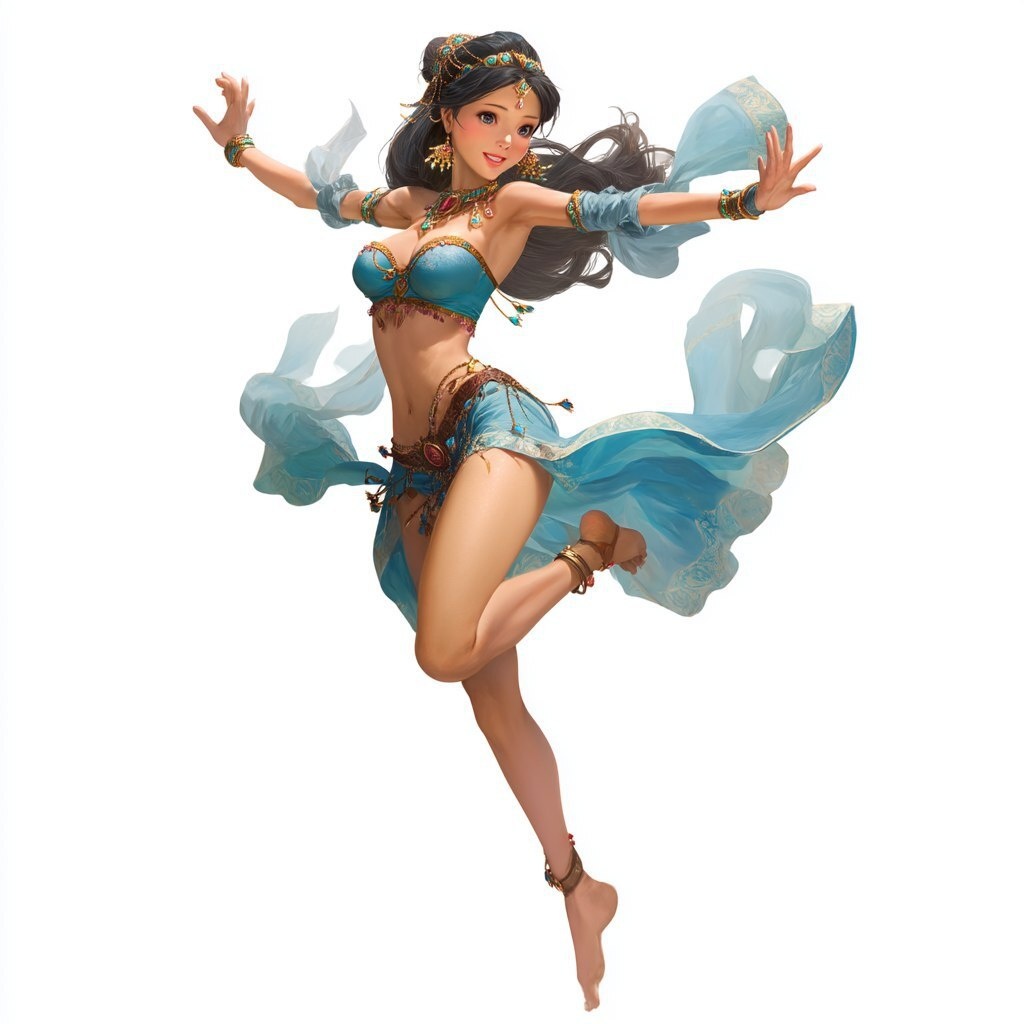 Создано на основе запроса: A beautiful oriental princess cartoon - dancing belly dance
