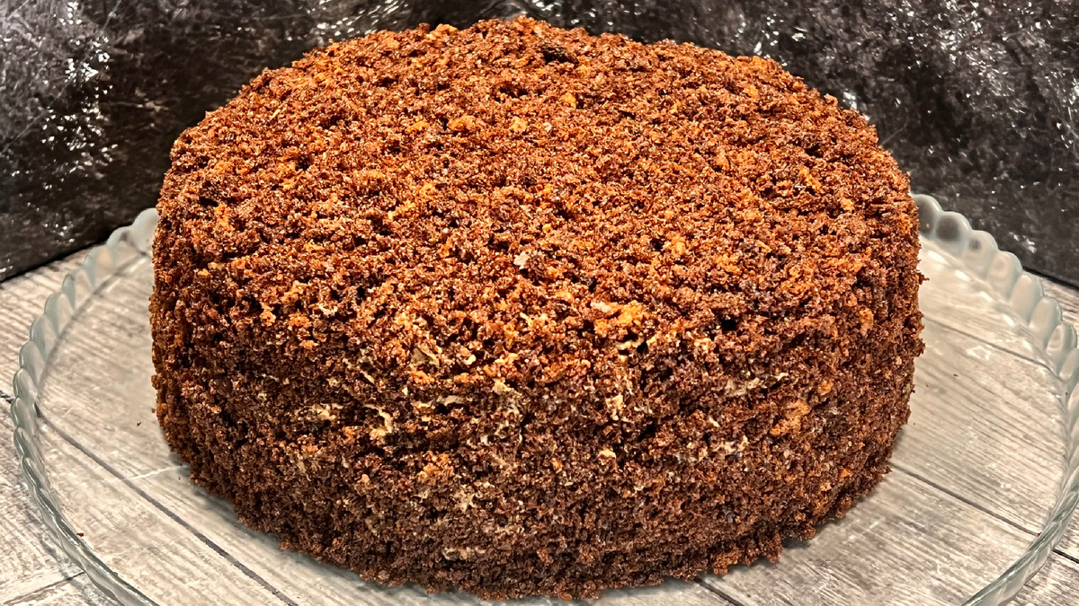 24.Из обрезков бисквита сделать крошку и украсить верх и бока торта.